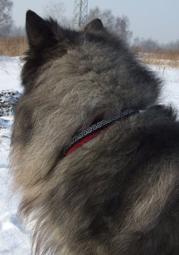 O wycieranie sierściuchy się nie martwię bo obroża podszyta jest polarem i przy przekręcaniu na szyi stanowi minimalny opór. Po za tym Ares raczej nie ma tendencji do wycierania futrzyska, do tej pory nosił zwykłą obrożę albo szelki i nie widać było ubytków w futrze, jedynie mnie krew zalewała jak się ta sprzączka w sierść owinęła i zamiast obroża obkręcać się wokoło szyi to wykręcała psu głowę